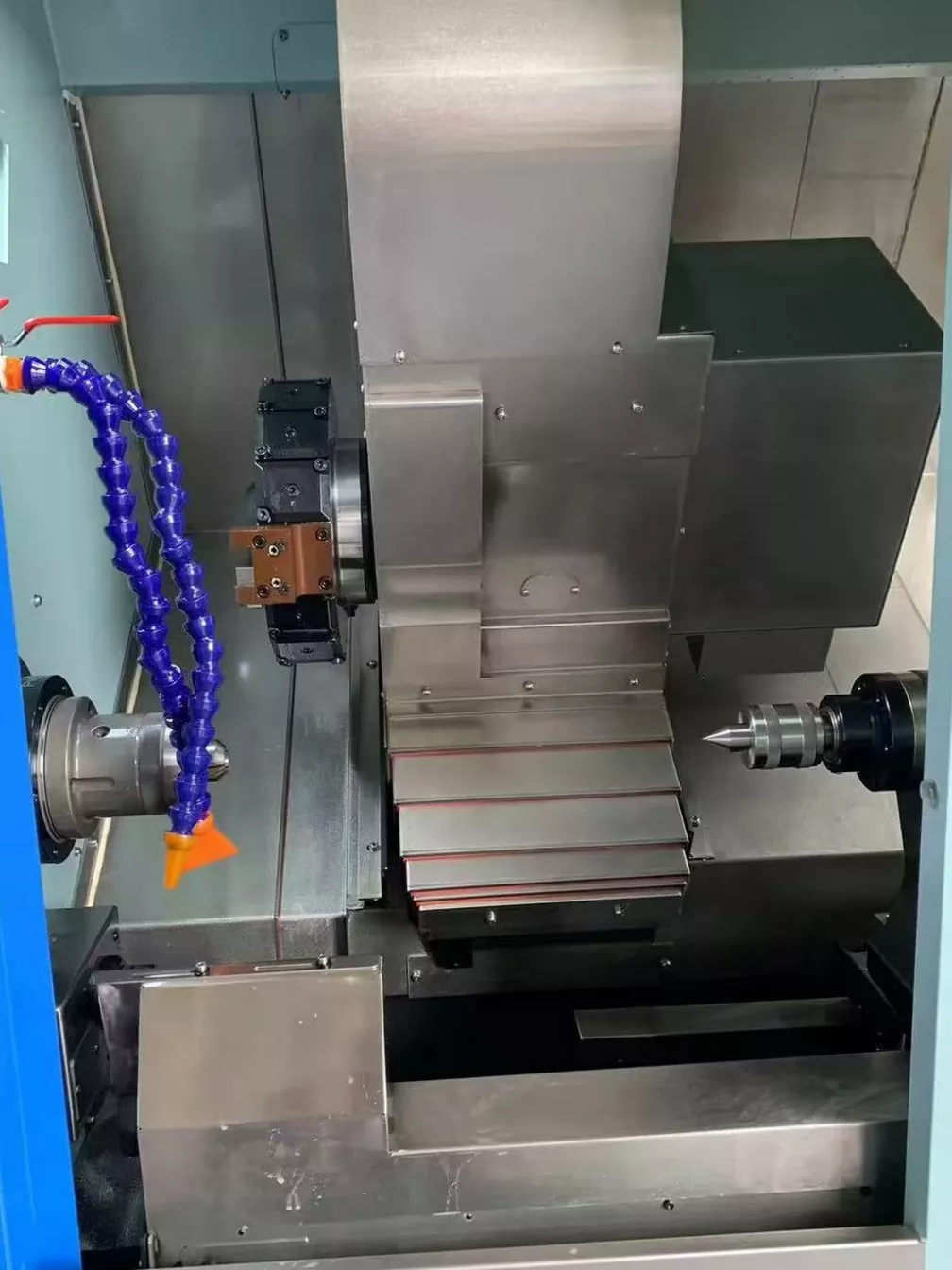 46テールストックターンミルコンポジットCNCマシン機械工具の内部構造。